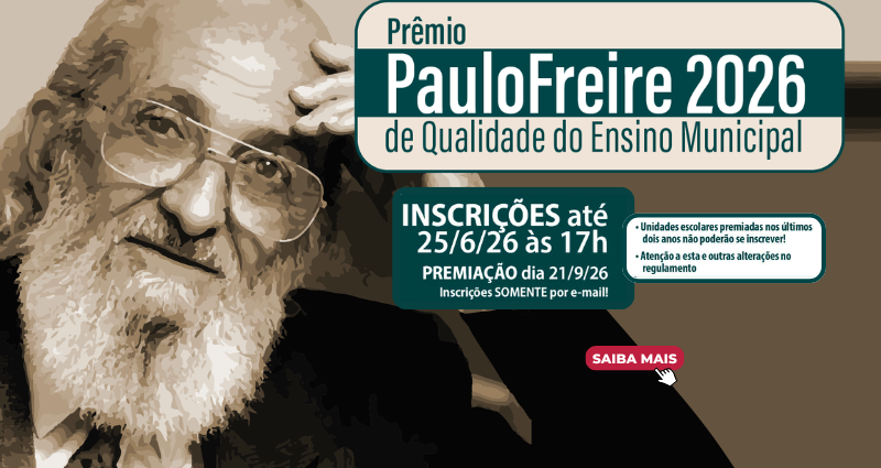 A Câmara Municipal de São Paulo abriu o prazo de inscrições para o Prêmio Paulo Freire de Qualidade do Ensino Municipal 2026. Criada em 1998, a premiação tem como objetivo estimular e valorizar iniciativas que estejam alinhadas a uma política educacional comprometida com a melhoria do processo de ensino-aprendizagem.
